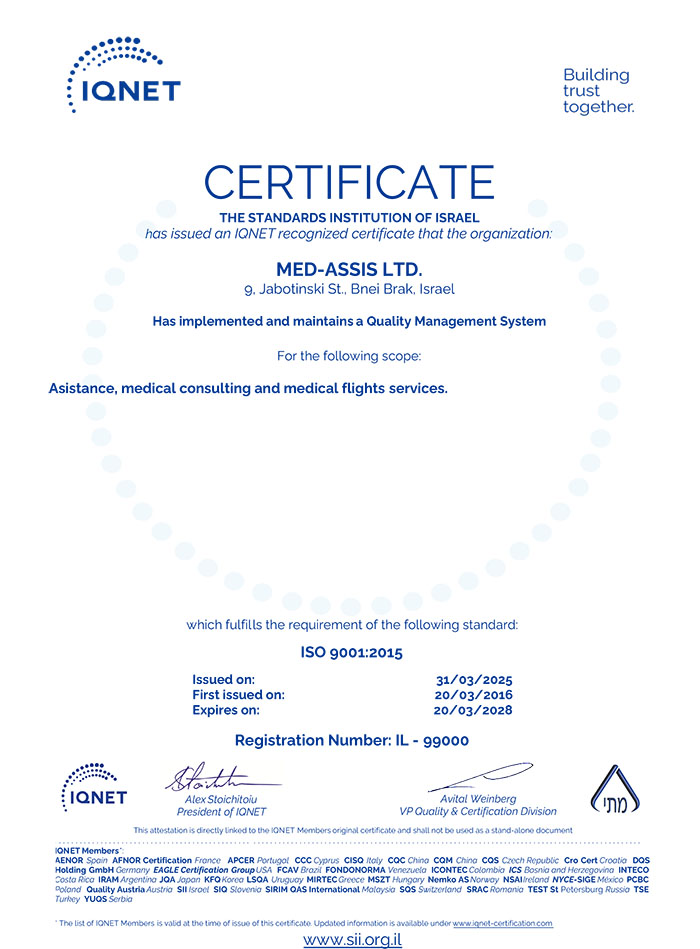 Founded in 2011, Medassis is Israel’s premier medical flight provider, serving the nation’s leading HMOs and top insurance companies, both domestically and internationally. Medassis has successfully handled thousands of medical cases and repatriation flights saving lives worldwide.